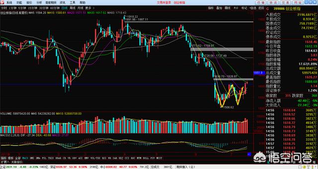 创业板指数,目前震荡筑底结构明显,短期需要关注上方跳空缺口压力,关注1650位置能否突破和成交量能否持续放大。