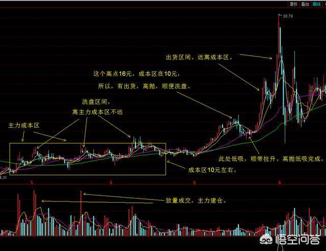 从上图,可以看出,主力的建仓方式,是逐渐拉升,缓缓建仓,60周线,慢慢斜向上走。在前期的拉升中,每次,股价达到或超过前期高点之时,主力就会压一下盘,股价下跌。这时,是洗盘行为。到后面,直接拉升几个涨停板的,就不是洗盘了,是出货。因为股价已经远离主力成本区了。后面,又做了一次更彻底的拉升出货,主力非常强劲,也正好是大盘大牛之时,充分发挥了。
