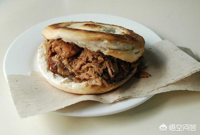 1、肉夹馍(炉子烤出的馍才好吃)