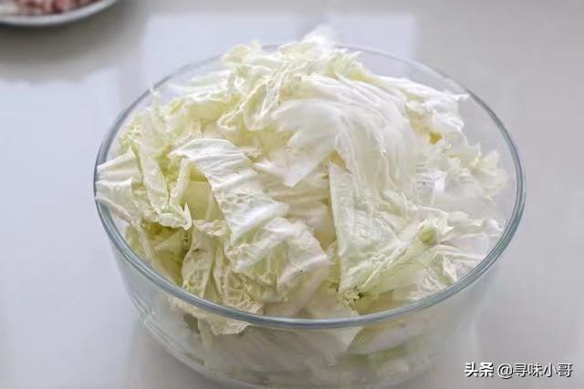 3.大白菜洗净后沥干水分,用刀斜着片成白菜片。