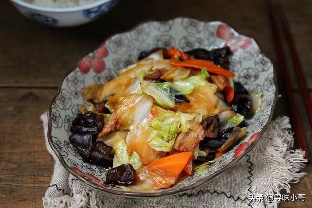 9.将所有食材和调味料翻炒均匀,关火盛出即可。一道营养丰富、简单的五花肉白菜炒木耳就做好了,喜欢的可以试试