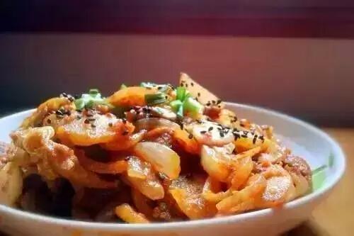 葱爆猪肉 一道很家常的家常菜,具有健脾开胃的功效,由于食材简单易于操作,是很多家庭中的一道美食。