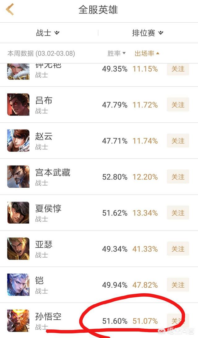 王者荣耀助手本周数据显示,猴子排位赛出场率高达50.07%,堪称国民英雄啊,相信在黄金局以上,几乎每局都会遇到猴子,不管是队友还是敌人