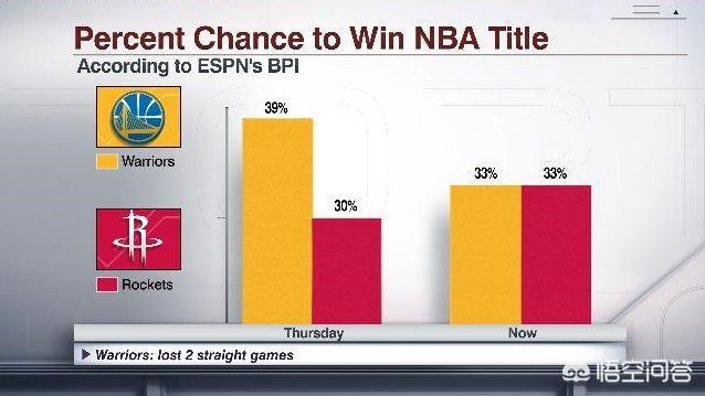 据最新的ESPN夺冠预测显示:火箭和勇士拥有了相同的概率,同为33%!