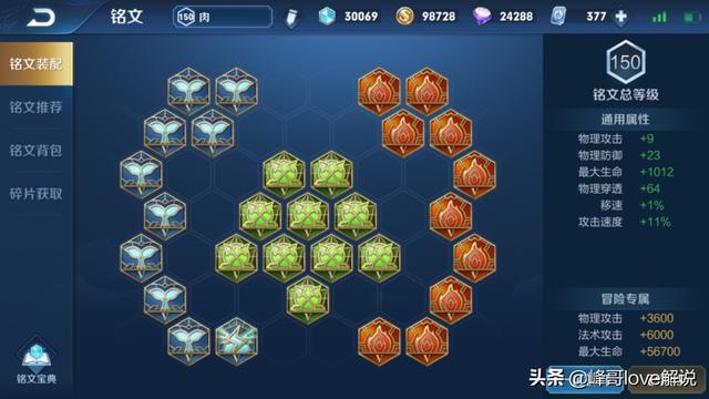 30个铭文搭配堪比一个大件还要强,什么百穿、什么16吸血、什么千血铭文,都讲究一个适合,带错了什么也不是,还有铭文搭配不是固定的,可以根据自身调配,但首先要搞懂其属,如果不会搭配铭文,可以多看看大神铭文出装,一般大致属性错不了,后期自己慢慢琢磨懂了,在参考弄一套属于自己喜爱的铭文搭配。