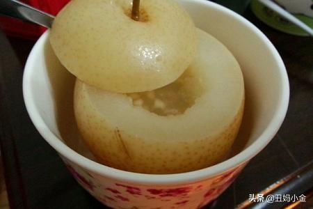 冰糖炖梨可以有效地化痰止咳,将新鲜的梨去皮,剖开去核,加入适量冰糖,放入锅中隔水蒸软即可食用。