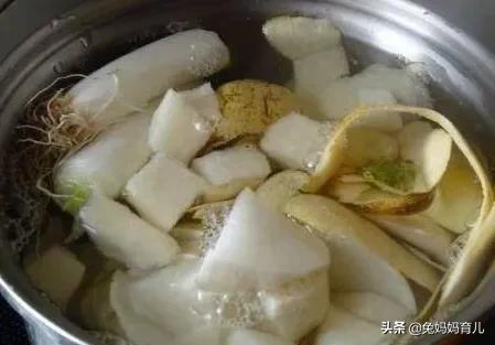 取带皮生姜2到3片,白萝卜带皮一个,洗净,一起放在水中熬煮3到5分钟,给宝贝去喝这个水,可以缓解风寒咳嗽!