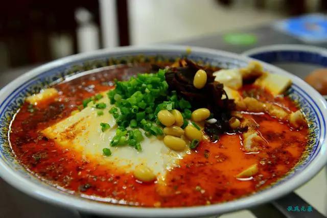 豆花泡馍是宝鸡人的早餐,以凤翔的最为有名,切成片的锅盔卯煮后,再舀起鲜嫩的豆花铺在上面,浇以热豆浆,加上调料,咸辣清香,灰常美味。