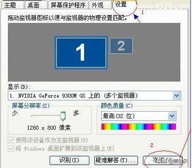 检查电脑闪屏的方法为用鼠标右键单击系统桌面的空白区域,从弹出的右键菜单中单击“属性”命令,进入到显示器的属性设置窗口。单击该窗口中的“设置”标签,在其后弹出的对应标签页面中单击“高级”按钮,打开显示器的高级属性设置界面。