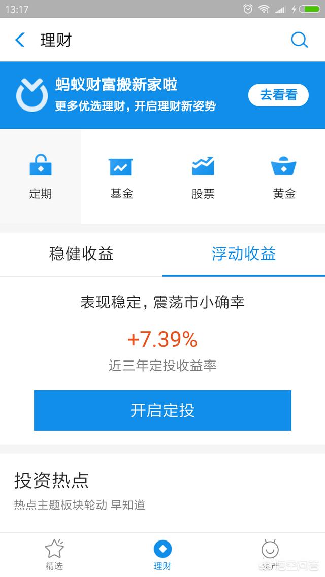 其次,可以购买一些定投或是基金,现在在某宝上或其他的一些第三方都可以直接买的,银行APP上也可以直接购买,很方便。根据自己的风险承受能力进行选择,想收益高回报快可以选些高风险、业绩好的基金,不想承担太大风险的可以买些定投,低风险,保本增值的基金,现在可供选择的类型有很多。