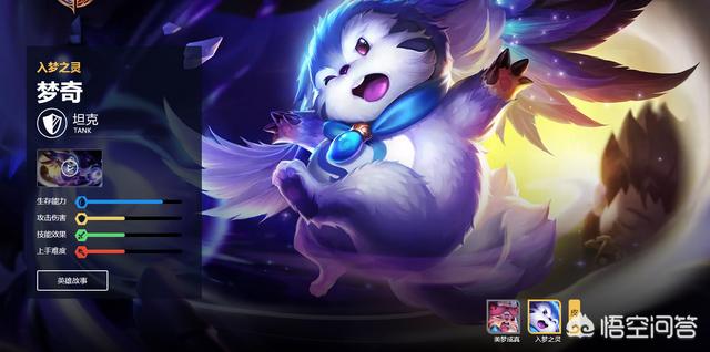 梦奇的被动让它拥有高额的双防和攻击力,并且一技能的护盾让它的生存能力很强。当一个全肉装的梦奇在前面,你发觉根本打不动它,而梦奇的粘人能力也很强,经常可以在面对两三个敌人的时候打败对方。