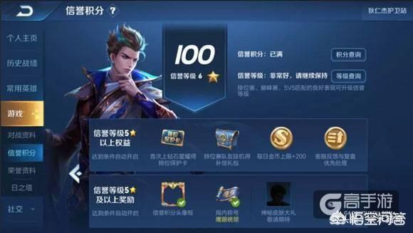 目前信誉积分上限固定100分,高于100分将转换为对应的等级,不同等级可提升的分数不同,又有7个等级之分,后续会对信誉等级高的玩家有更多的奖励。