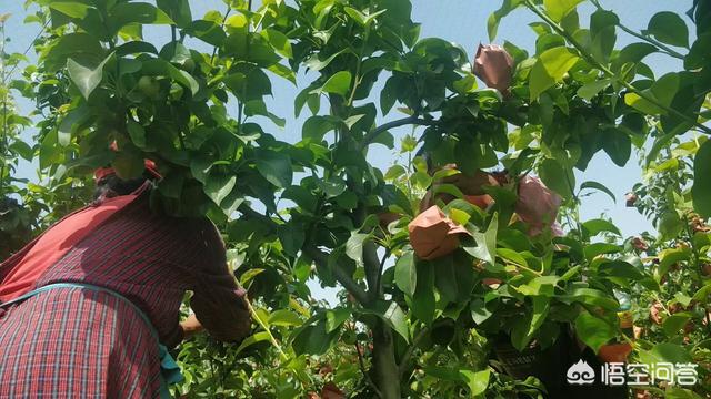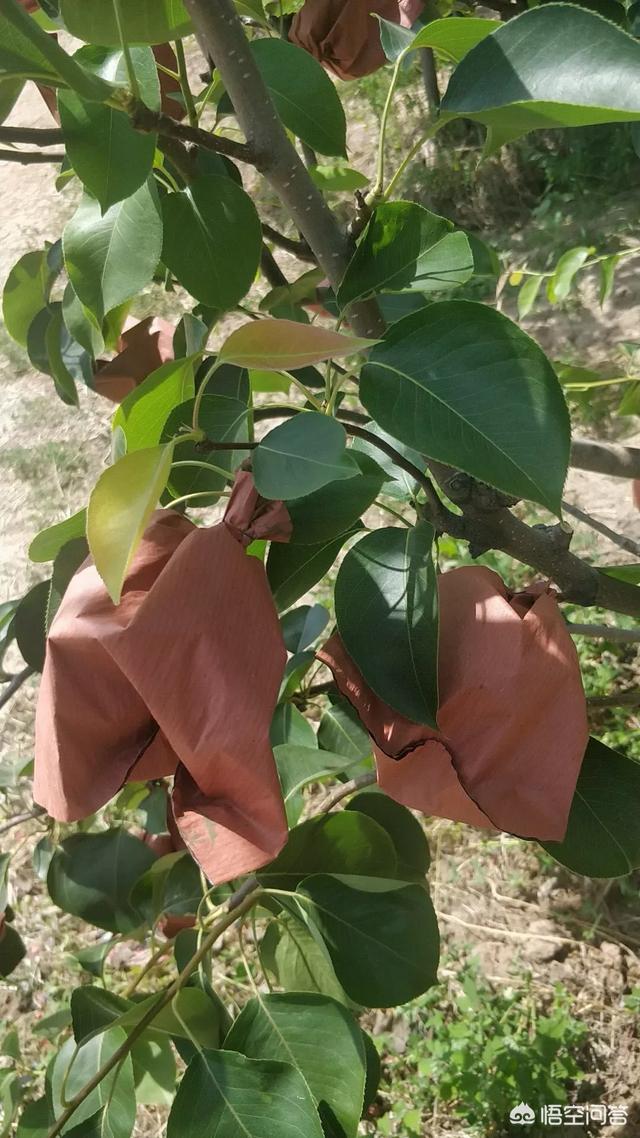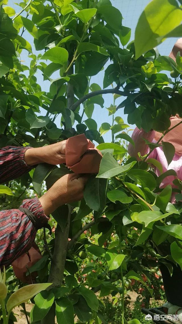 下图为梨树套袋,也可以有效防治病虫害。