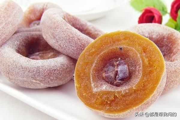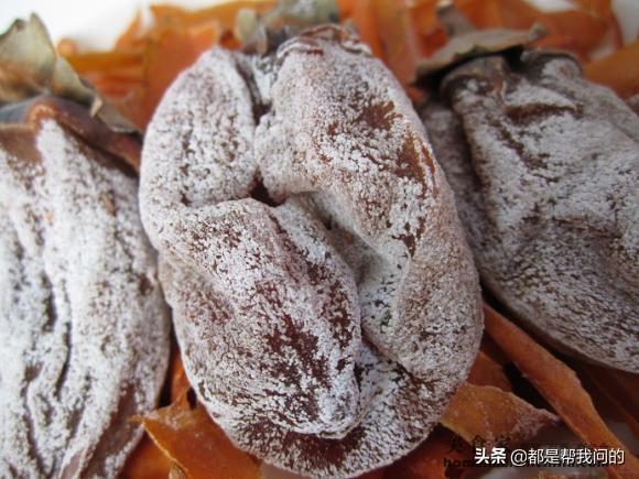 1、柿饼上有一层白色的糖霜,看起来就像是发霉了一样,其实并没有发霉,这是柿子中糖析出的正常反应,因此是可以食用的。