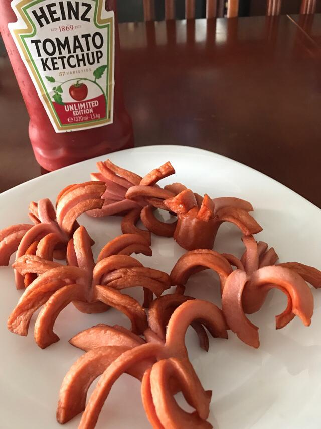 火腿肠我喜欢这样做,配蕃茄酱,好吃