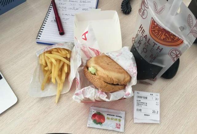 周四点了经典黑椒牛肉汉堡套餐,汉堡包、薯条和可乐的经典搭配,也是垃圾食品三剑客。这三样既是油炸高热量食品,还有碳酸饮料,小编都是瞒着父母吃的,每年体检医生都不让吃这些。