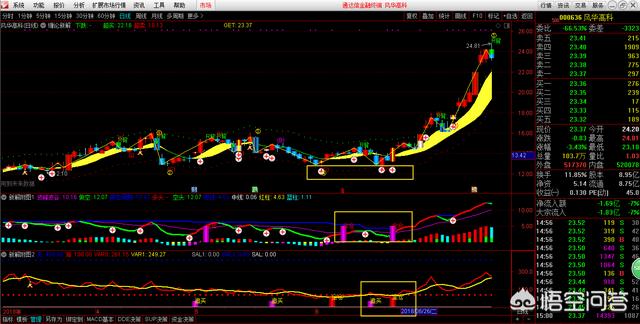 2、随股价回落,DIF(白线)向MACD(黄线)靠拢,当白线与黄线粘合时(要翻绿未翻绿),此时只需配合日k线即可