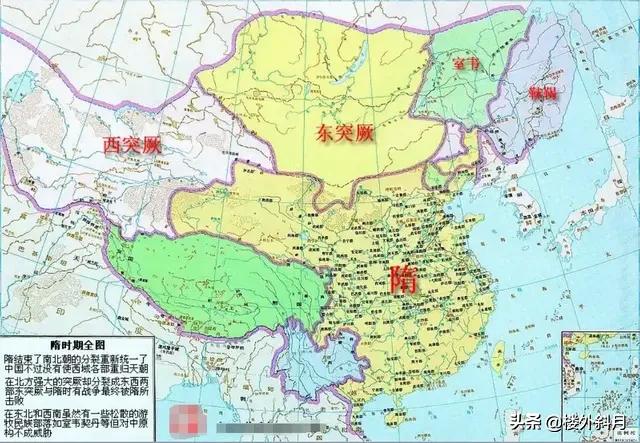 3,隋朝统一中国后,把流求(今台湾)和青海纳入版图。(缺西藏、西域、东北、蒙古高原)