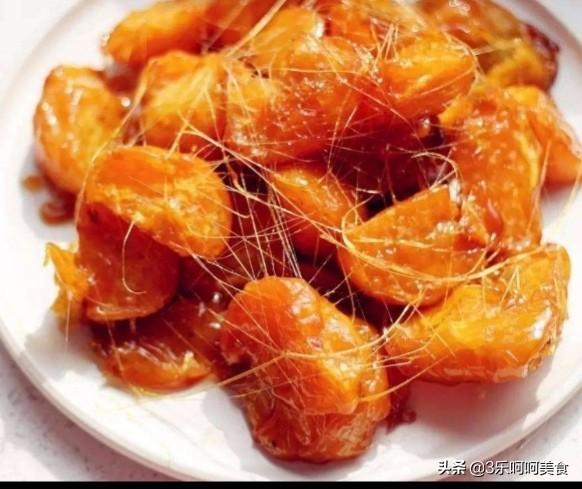 东北有道菜叫拔丝地瓜,是婚宴酒席上必有的一道菜,做法是先把地瓜切成滚刀块,过油炸熟,然后熬制白糖,可用水熬也可以用油熬制,糖熬好后下入地瓜,吃的时候夹起一块地瓜可以拉出很长的糖丝,所以才叫拔丝地瓜。这道菜糖的熬制是关键,是考验厨师技能的,真怀念那个味道啊!