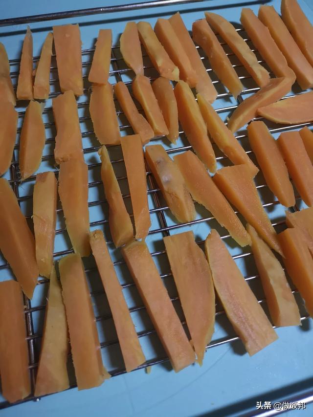 我给你介绍一种地瓜的吃法,叫地瓜糖,把地瓜切比筷子粗一些的条,放到有阳光通风处晾成半干,炒锅放火上烧热,把晾好的地瓜条放入锅中炒干,取出晾凉,就做成了酥脆的地瓜糖,很好吃的,当零食健康安全,又不会长胖。