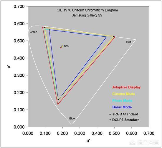 据DisplayMate称,三星S9的这款屏幕在色域和色准方面堪称史上最强,几乎达到了完美。本次三星S9同样拥有四种屏幕色彩模式,分别为Adaptive Displsy(自适应)、Cinema Mode(电影模式)、Photo Mode(图片模式)和Basic Mode(一般模式)。在自适应模式下,三星S9的屏幕最高可达到113%的DCI-P3色域,而在电影模式下则可以拥有101%的DCI-P3色域。