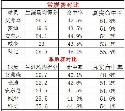 即便如此,如果同艾弗森、麦迪、安东尼、维斯布鲁克这些后乔丹时代拿过得分王的球员比,科比不但不铁,还是更高效的那一个