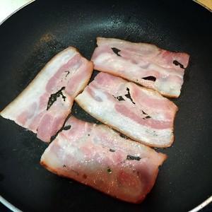 3.重新热锅,下培根煎香然后盛起备用;