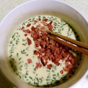 材料:普通面粉 鸡蛋 水 葱 培根
