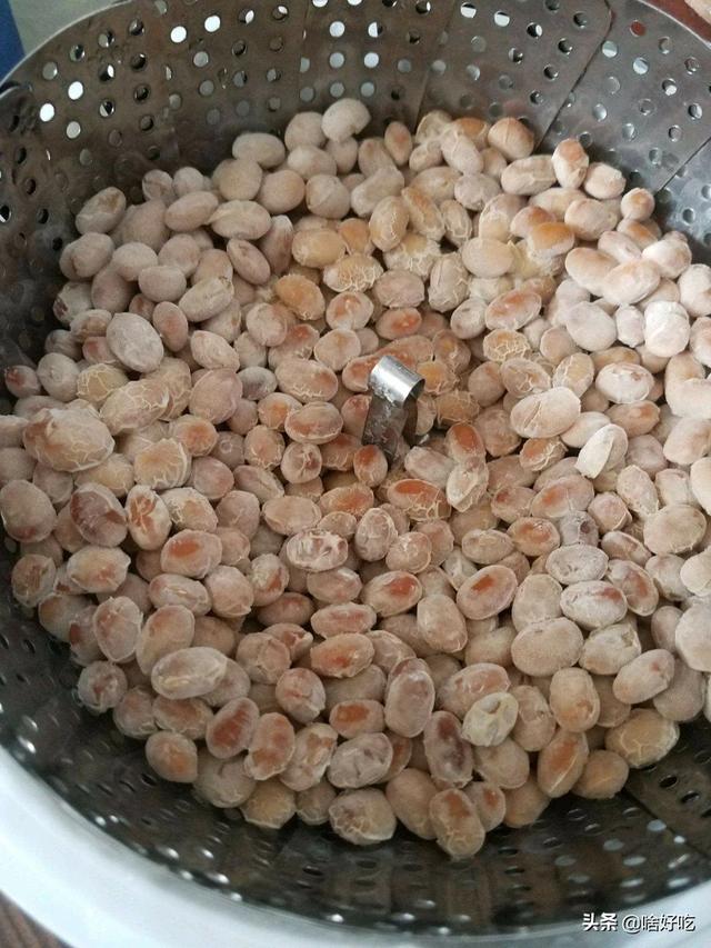 5.二十四小时后,豆粒就发酵成纳豆了,豆粒之间有粘粘的丝丝,并有纳豆那种特殊的气味。
