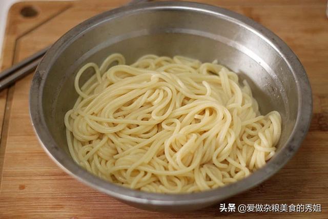 煮好的意面捞出,用食用油拌一下待用(煮面的途中可以炒意面酱)。