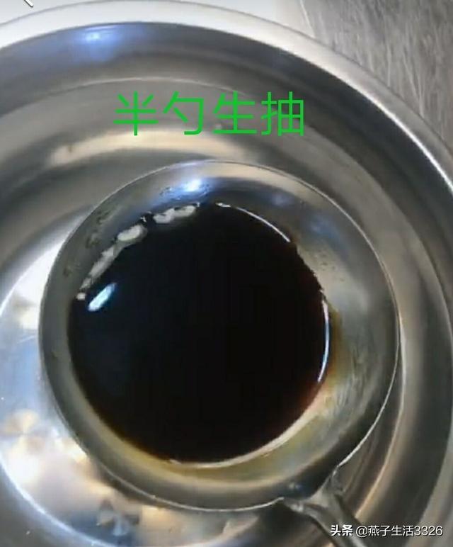 第二,在倒半勺生抽,半勺香醋到碗里面,具体如下图: