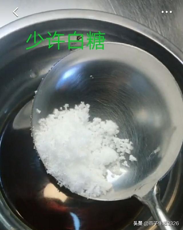 第三,同样,再取少许白糖和半勺老干妈倒入碗里,具体如下图的量: