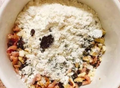 2斤红糖中混入3两面粉搅拌均匀。再将核桃仁倒在一起搅拌均匀即可。红糖包里边加面粉,能够有效吸附红糖,防止蒸熟后红糖溢出。