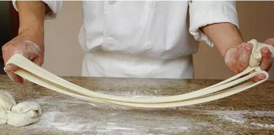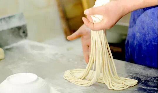 “二细”的拉制一般六手成型,面条直径约2.5-3.5mm左右。圆滑,有嚼劲,颇得男士青睐。