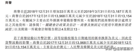 相比于债务压力,百亿商誉才是百威亚太的隐形地雷。由于百威亚太的发展策略一直是买买买,不断并购本地啤酒商,所以形成了高达百亿美元的商誉。招股书最新的资料显示,百威亚太截止到2019年3月31日的商誉为131.87亿美元,相比于2018年末的131.54亿美元有所增加。