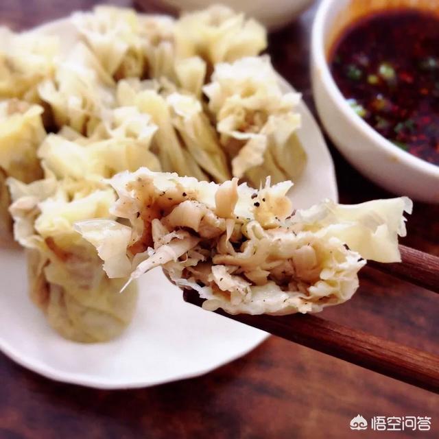 3、猪肉剁成肉末,加盐、味精、胡椒粉调好味后,和入炒过的竹笋做成馅心。