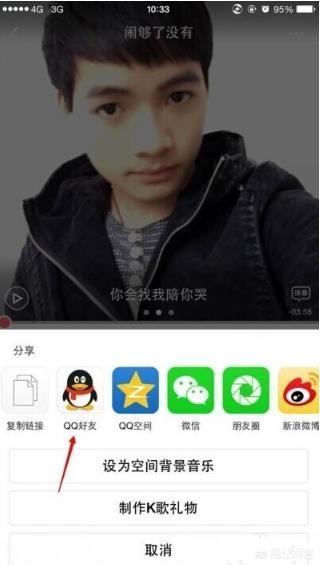 B.分享这首你唱的歌到QQ好友。你会得到一个链接