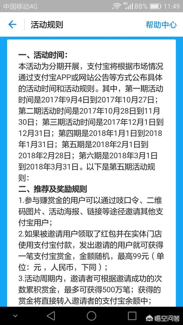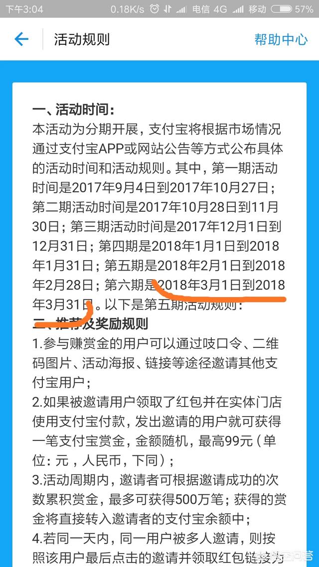 2018年3月1日至3月31日为支付宝第六期红包的最后一期,三月份月尾就是目前官方发表的活动期限最后截止日期,下图就能很好的说明活动的期限,想要了解更详细的规则,可以打开“支付宝”,点击“发红包赚赏金”,打开右上角的“活动规则”,就能了解规则内的一切了。