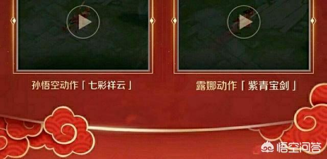 而你想要得到孙悟空的专属动作-七彩祥云和露娜的专属动作-紫青宝剑则需要另外充钱来抽取!