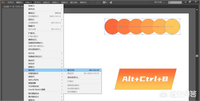 接下来,再次点击【对象】—【混合】—【建立】或者直接按快捷键【Alt+Ctrl+B】,即可出现一组近似色。