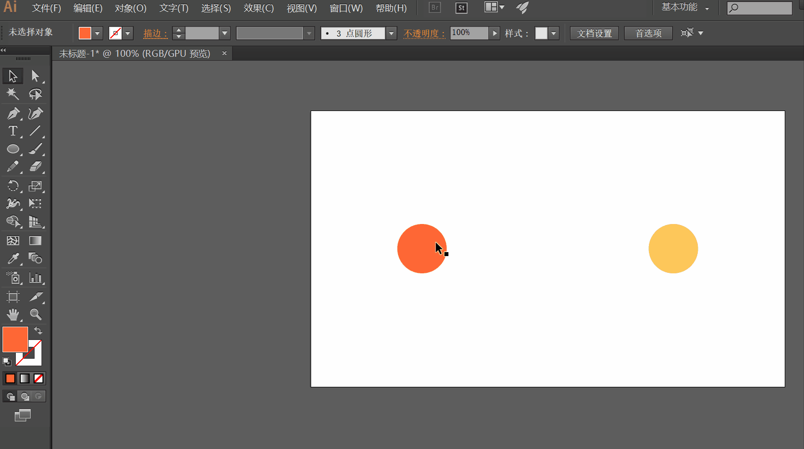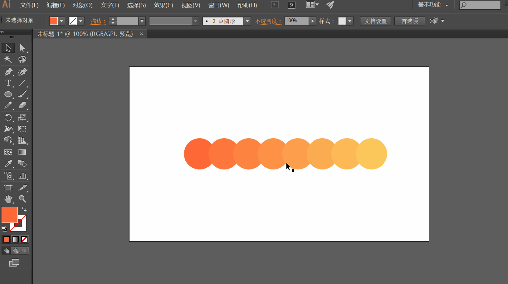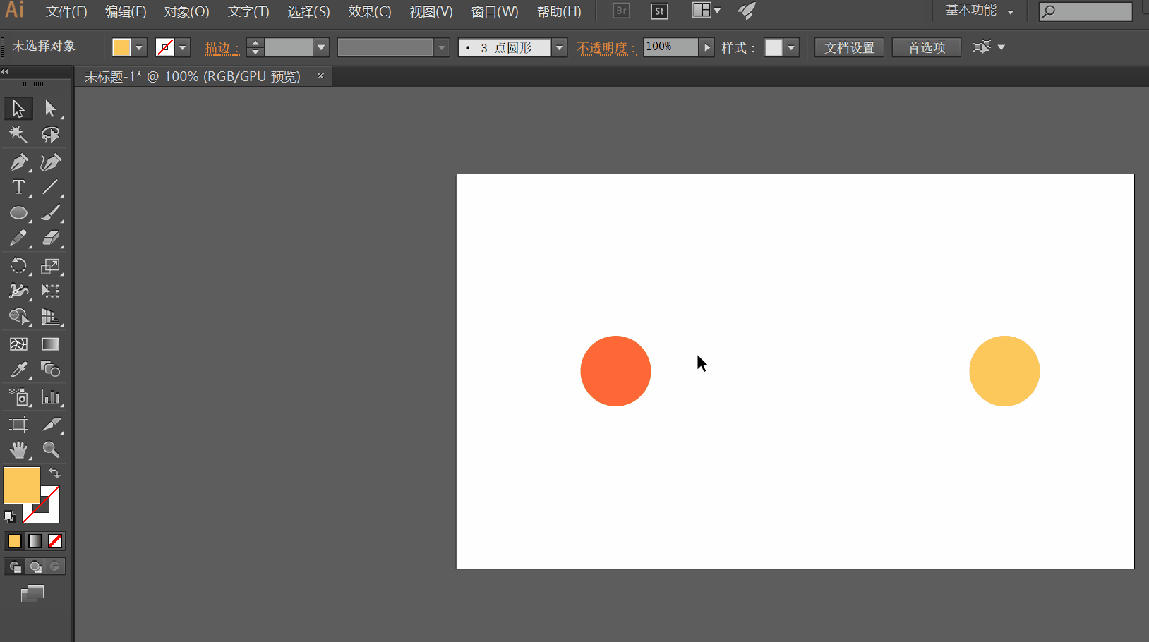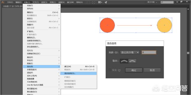 首先,插入2个圆形,依次选择橙色再选择黄色,点击【对象】—【混合】—【混合选项】,然后将步数设置一下,这里设置为4步。