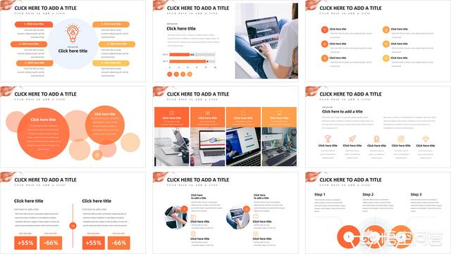 还有这种暖色类型的PPT页面,也是使用近似色设计,其效果也不错。