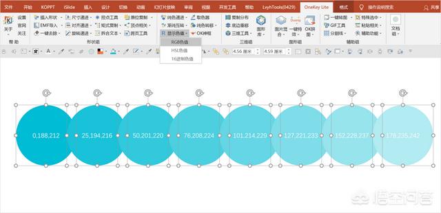 同理,再使用【OK】插件中的显示色值,将形状中的RGB颜色显示出来。
