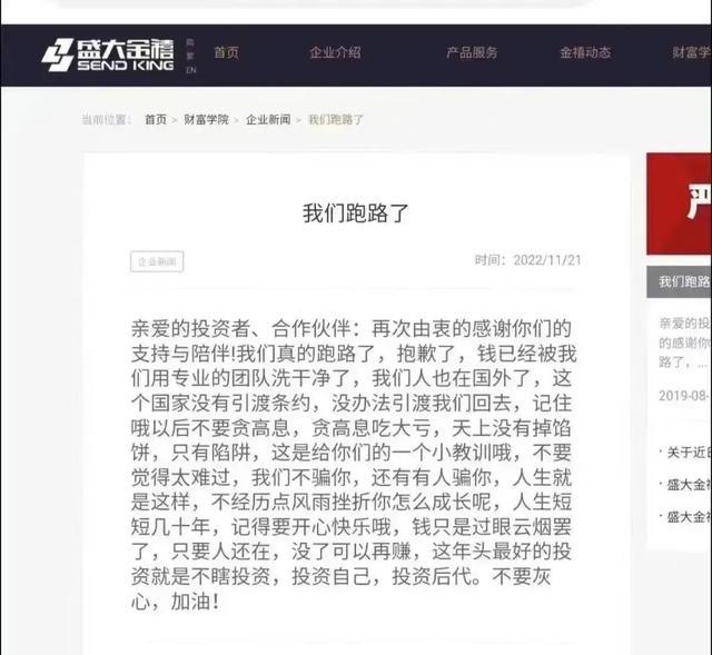一方面,盛大金禧本质上是一家中介公司,这样的公司和所谓的关联公司,资产大概率不会太多,恐怕很难保证194亿的投资款全额兑付,能分到每一位投资客手上的资金恐怕很有限;