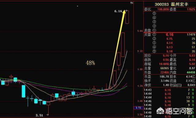 温州宏丰,我们可以看到该股股价前期跌至底部的3.51元后,在底部开始横盘震荡,近期以阳线突破了前期的压力位,而本人发现主力资金却在持续的进场,与股价形成了背离,在低位形成了企稳信号,在9号果断的选出讲解, 果不其然之后也是连续涨停,很多之前看过本人讲解的朋友都是抓到了这48个点的收益。恭喜抓住的朋友。