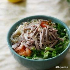 最后将肉丝摆放在煮好的米粉上淋上汤即可。 这款“肉丝汤粉”做法简单,口感清淡,肉丝甘香,做早餐最好!方便快捷。老少咸宜。