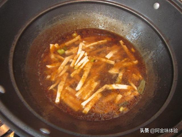 粉丝汤的做法很简单,我们拿一把取自吉林长岭三青山的粉丝,温水泡三分钟,打开炉灶,加入油,加入葱、姜,大酱爆锅,放入两碗水,烧开,再加一碗凉水,同时将泡好的粉丝加入锅中,水烧开后即可出锅,撒上葱花,一碗热腾腾的粉丝汤做好了。