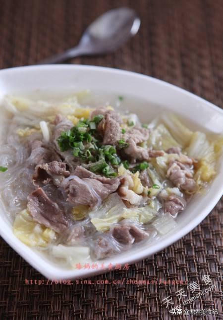 2.另取羊肉加调料、肉汤炖烂,放入粉块、鲜菜(任何青菜都可)、调料、木耳烧成。