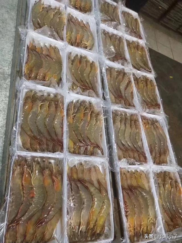 很简单,用几个一次性盒子,放虾进去,然后放点水淹着,放进冰柜速冻,为什么要放水呢,因为放水淹着虾,明虾就不会变黑头,新鲜度保持