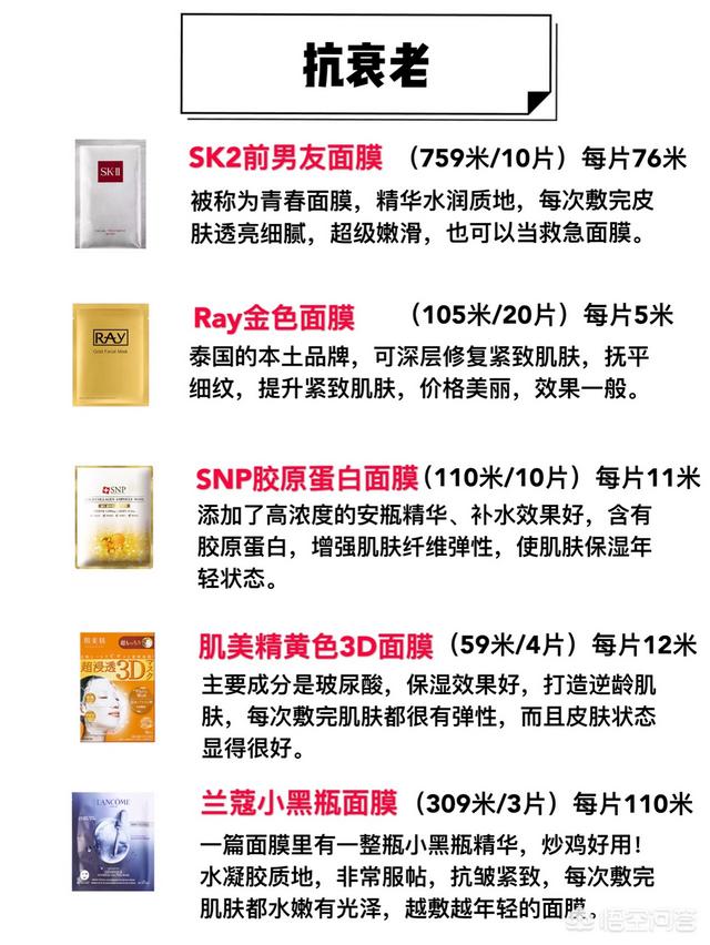 上个星期整理了35款热门面膜,补水面膜、美白面膜、清洁面膜、祛痘面膜、抗初老面膜、收缩毛孔面膜,给私信我的朋友。具体内容自行看图